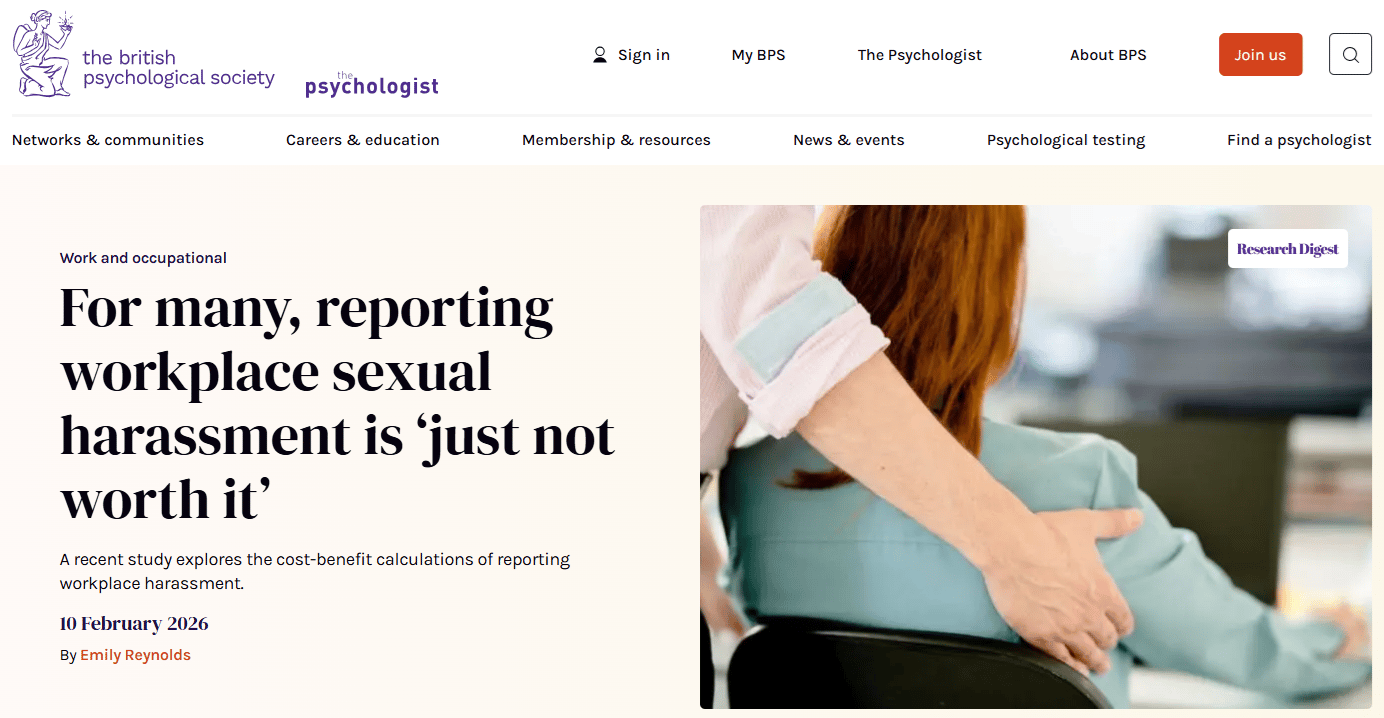 Research from the British Psychological Society found that many employees don't report sexual harassment in the workplace because they genuinely don't believe anything will happen.