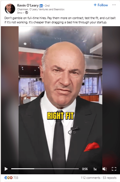 Kevin O'Leary said it well: don't gamble on full-time hires before you have proof. Pay people to perform.